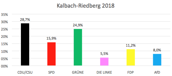 Unser Stadtteil entwickelt sich zu einer grünen Hochburg! Wir liegen zwar leicht unter Stadtniveau, sind dafür aber konsequent auf Platz 2, und der Riedberg liegt sogar leicht über Stadt-Niveau (wobei sich die Briefwähler nicht klar zuordnen lassen).